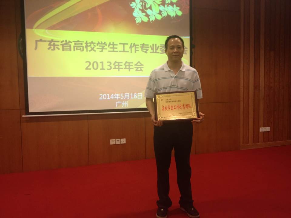 5月18日,在廣東省高校學(xué)生工作專業(yè)委員會(huì)2013年年會(huì)上,五邑大學(xué)經(jīng)濟(jì)管理學(xué)院學(xué)生工作團(tuán)隊(duì)在學(xué)生教育管理工作、幫扶體系、完善制度、樹(shù)立典范、開(kāi)拓創(chuàng)新等方面的工作成效顯著,獲廣東省高校學(xué)生工作專業(yè)委員會(huì)授予“2013年廣東省高校學(xué)生工作優(yōu)秀團(tuán)隊(duì)”稱號(hào)。