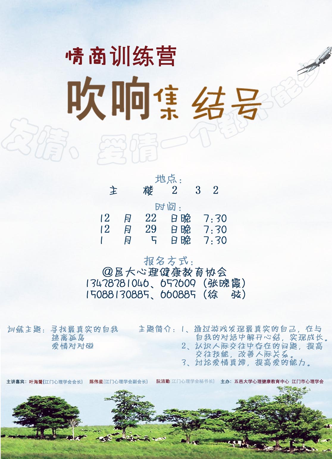 五邑大學(xué)團(tuán)體心理輔導(dǎo)——情商訓(xùn)練營(yíng)火熱報(bào)名中