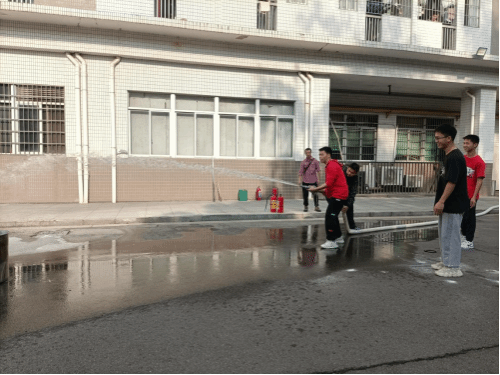 演練結束后,保衛處申樹林老師對本次演練進行了總結,并向同學們詳細講解了消防設施器材的應用、火災撲救方法及疏散逃生自救注意事項等,組織同學們現場演練了如何正確使用滅火器及接駁消防水槍撲滅火情。