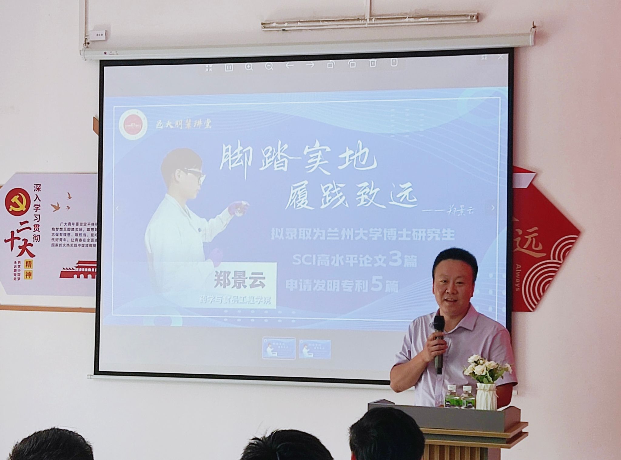 活動現場,鄭景云同學從“追夢不止貴在堅持”“樹立終身學習理念”“以責為任勇于擔當”“做好時間規劃管理”等四個方面,為同學們分享了自己的經驗方法和心得體會。他強調學習不是一朝一夕的事情,需要堅持不懈地努力和積累,一次實驗的成功,是他近三年4000多次實驗的積累。他鼓勵同學們要深耕專業知識領域,樹立終身學習理念,以責為任,勇于擔當作為,并在互動環節就現場同學提出的關于學習、生活、職業規劃等問題一一解答,為他們進一步更好地規劃人生目標提供了寶貴的方向。活動最后,柯曉偉為鄭景云同學贈送印有五邑大學字樣的紀念禮物,并對他為師弟師妹們進行的精彩分享表示由衷感謝。