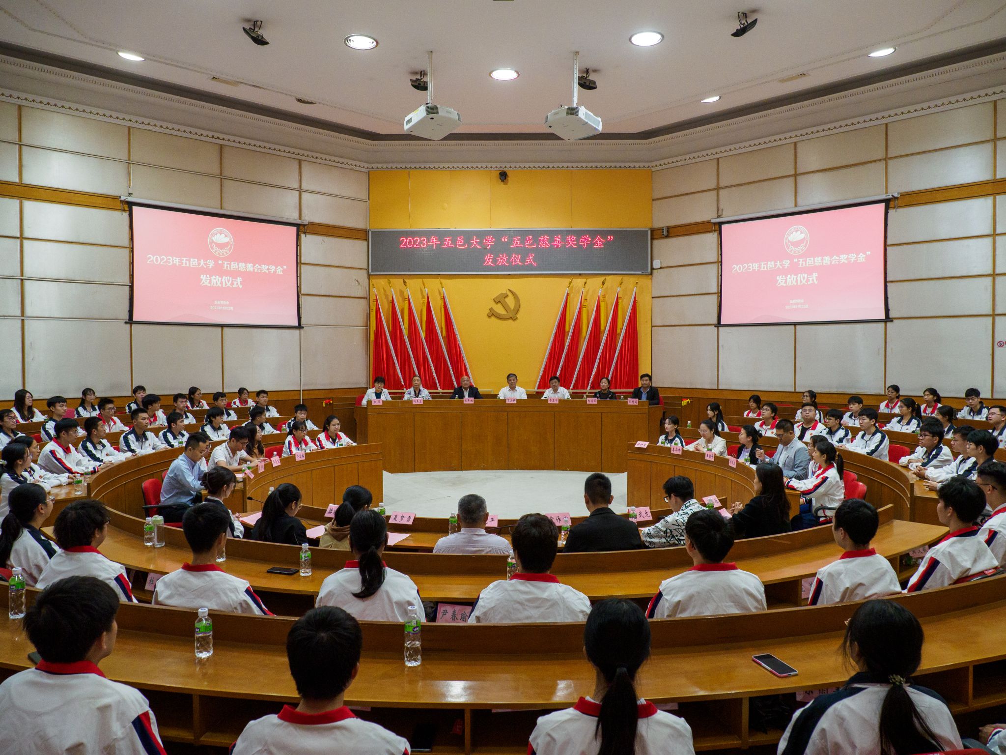 11月25日下午,2023年五邑大學“五邑慈善會獎學金”發放儀式在我校十友樓舉行。江門市中刀精密科技有限公司董事長查正華、江門市中盈融資擔保有限公司董事長陳燕旭、江門市美味食品有限公司董事長楊麗華、江門市本和機車配件實業有限公司董事長馮美蘭、江門凱信科技實業有限公司董事長陳鵬滿等5位五邑慈善會副會長,五邑大學校長張運華,副校長陳廷根,學生工作部(學生處)相關人員、各學院(部)輔導員代表以及100名獲獎學生代表參加活動。儀式由學生工作部(學生處)部(處)長李華主持。