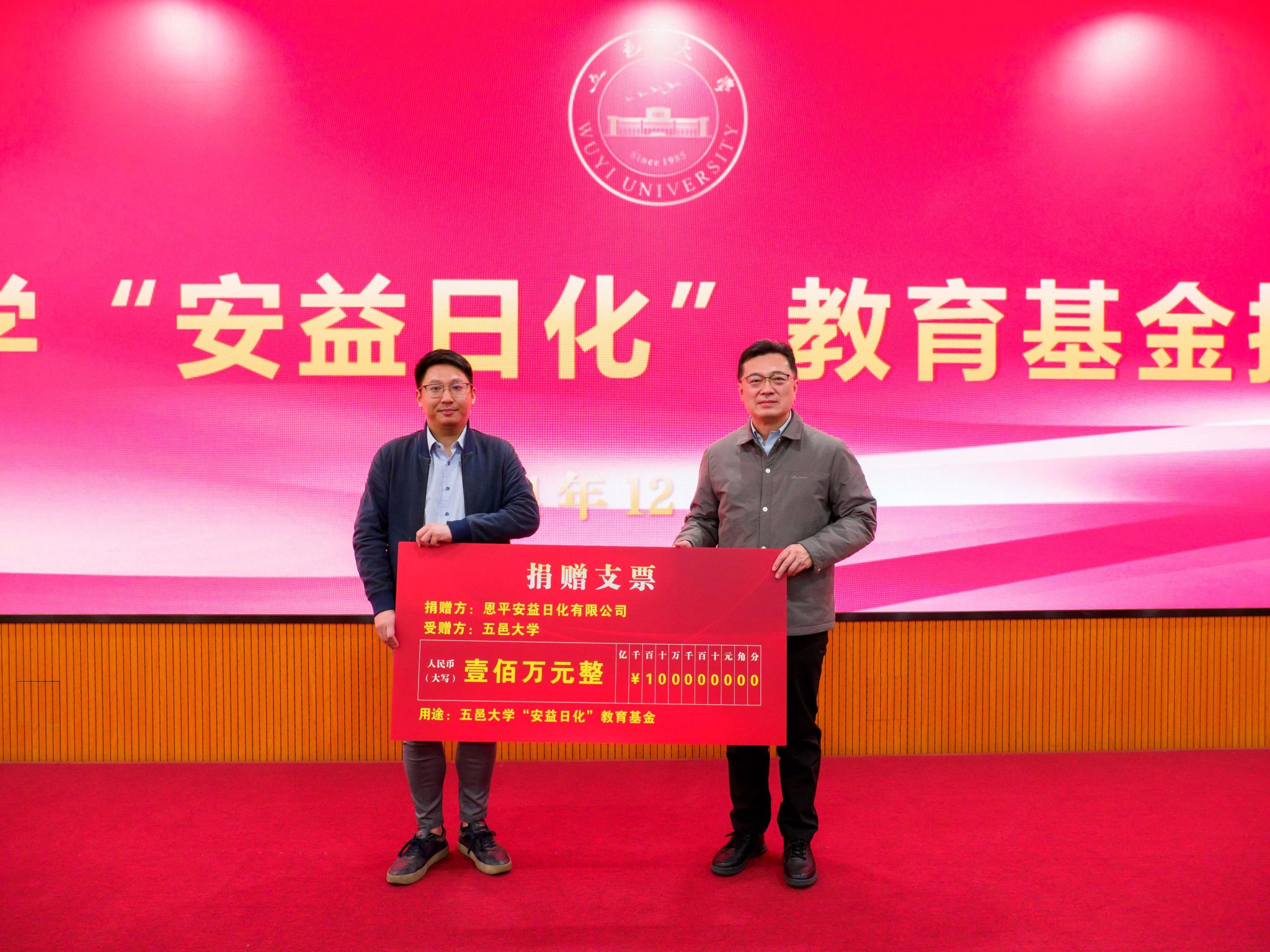 欒天罡代表學(xué)校向關(guān)心支持學(xué)校事業(yè)發(fā)展的恩平安益日化有限公司董事長(zhǎng)馮敬良先生表示衷心感謝。他指出,當(dāng)前五邑大學(xué)正在緊緊圍繞立德樹(shù)人根本任務(wù),統(tǒng)籌推進(jìn)教育科技人才體制機(jī)制一體改革,著力打造粵港澳大灣區(qū)腹地人才培養(yǎng)的重要基地和服務(wù)創(chuàng)新發(fā)展的重要引擎,以實(shí)際行動(dòng)回答“發(fā)展新質(zhì)生產(chǎn)力,教育何為”的命題。在五邑大學(xué)即將迎來(lái)建校40周年之際,馮敬良先生代表恩平安益日化有限公司向?qū)W校捐贈(zèng)100萬(wàn)元善款,設(shè)立“安益日化”教育基金,是對(duì)五邑大學(xué)近年來(lái)辦學(xué)成績(jī)的高度肯定,也是以馮敬良先生為代表的優(yōu)秀企業(yè)家的情懷、格局、胸襟和魄力的生動(dòng)體現(xiàn),更是對(duì)五邑大學(xué)推進(jìn)僑校特色鮮明的高水平應(yīng)用型大學(xué)建設(shè)提供強(qiáng)有力的支持。