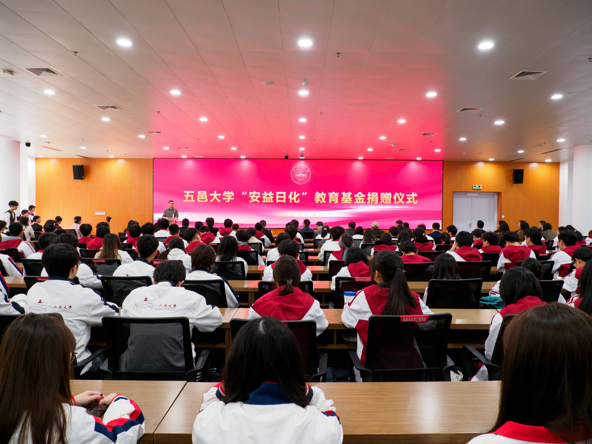 12月18日下午,五邑大學(xué)“安益日化”教育基金捐贈(zèng)儀式在策文商學(xué)院大樓副樓204報(bào)告廳舉行。恩平安益日化有限公司董事長(zhǎng)馮敬良先生,校黨委書(shū)記欒天罡、黨委副書(shū)記李華,學(xué)校相關(guān)職能部門(mén)、學(xué)院主要負(fù)責(zé)同志以及各學(xué)院師生代表參加活動(dòng)。儀式由黨委副書(shū)記李華主持。