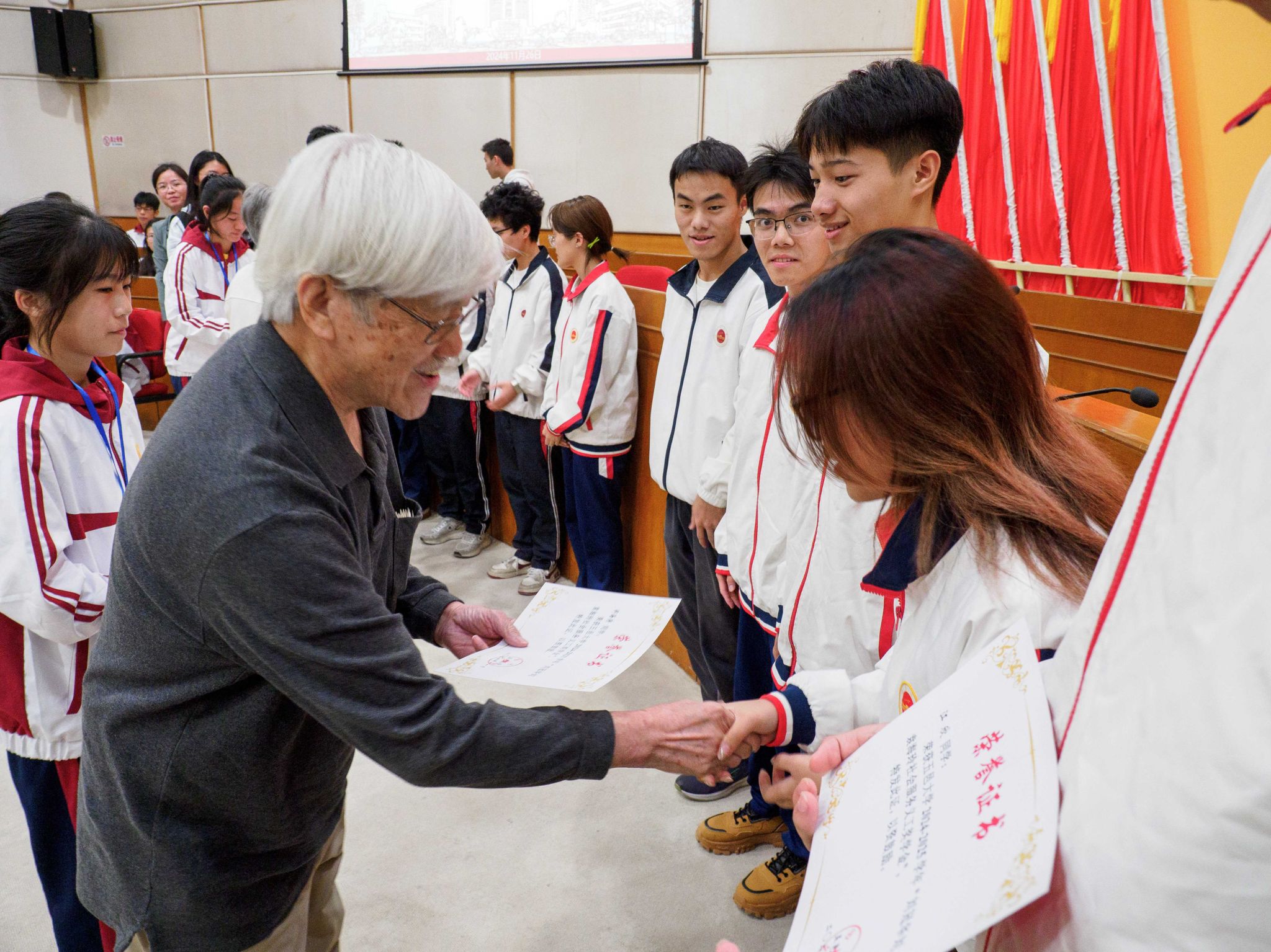 發放儀式上,劉冠華先生伉儷分別為今年獲得“李瑞蓮獎學金”“劉榮蕭獎學金”“劉冠華劉袁海玲社會服務義工獎學金”的50名學生一一頒獎。獲獎學生代表向劉冠華先生伉儷回贈感謝信,并為兩位嘉賓獻上鮮花。
