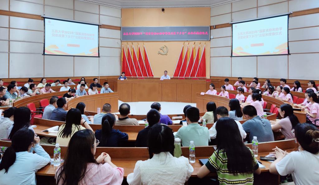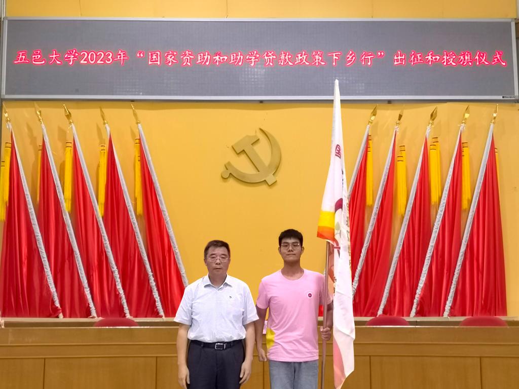 7月18日下午,五邑大學2023年“國家資助和助學貸款政策下鄉行”出征和授旗儀式在十友樓舉行。校黨委副書記李靄康出席,學校相關職能部門負責人、各學院(部)黨委副書記、全體輔導員、各隊伍指導老師及我校省級立項隊伍學生參加此次活動。