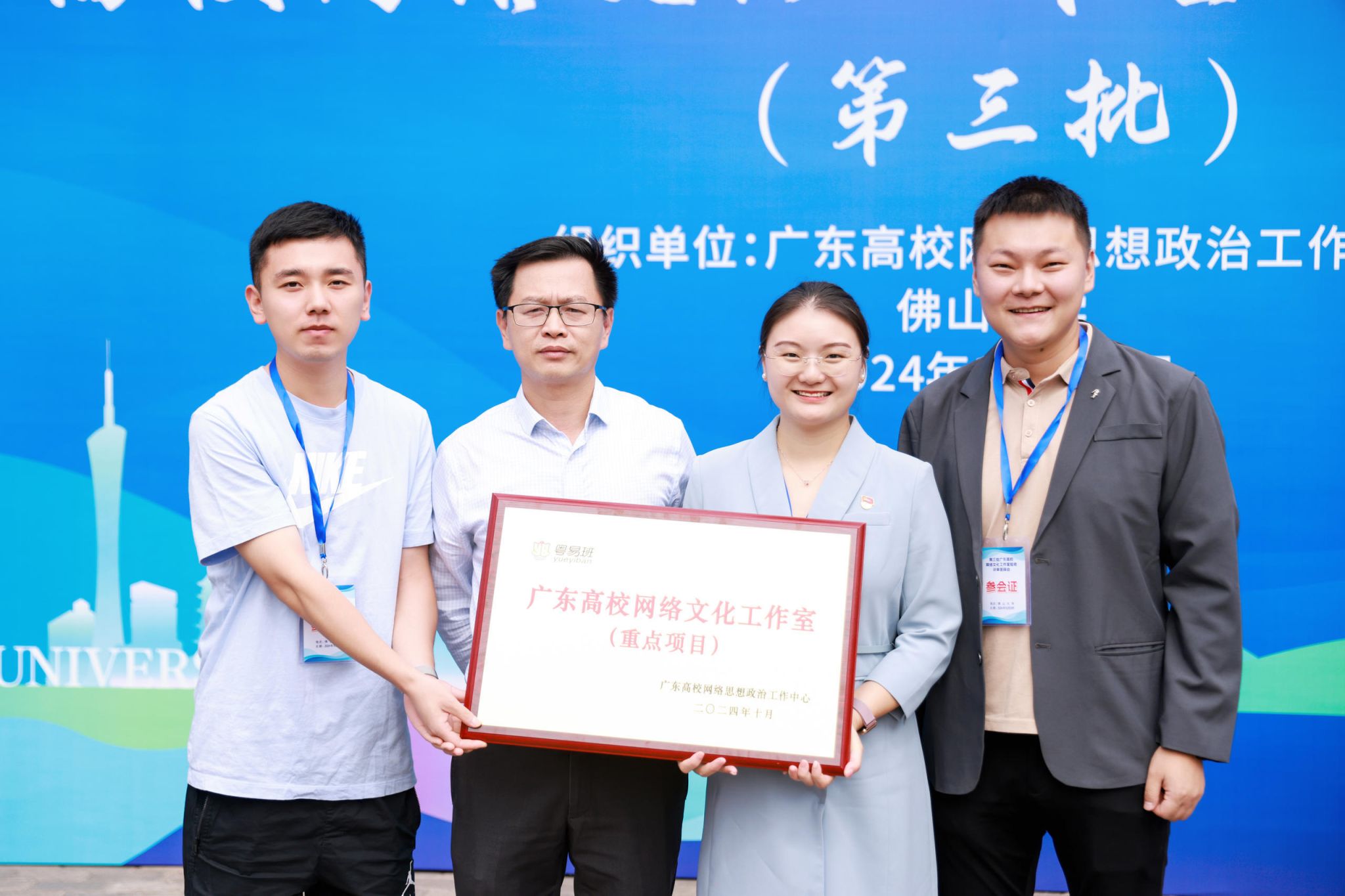 10月29日,第三批廣東高校網(wǎng)絡(luò)文化工作室驗(yàn)收評審答辯會在佛山大學(xué)舉行,20個廣東高校網(wǎng)絡(luò)文化工作室代表參與現(xiàn)場匯報(bào)及答辯。經(jīng)評委評審,我校“邑見青心”網(wǎng)絡(luò)文化工作室順利結(jié)項(xiàng)并獲“良好”等次,被授予“廣東高校網(wǎng)絡(luò)文化工作室(重點(diǎn)項(xiàng)目)”牌匾。