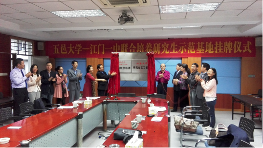 12月1日,五邑大學與江門第一中學、順德區李偉強職業技術學校以及江門市第一職業高級中學共建的“廣東省聯合培養研究生示范基地”掛牌儀式分別在三地舉行。我校研究生處楊鐵牛處長、文學院謝珊珊院長、外國語學院田文燕院長、經濟管理學院趙良輝副院長、文學院周穎副院長、數學與計算科學學院曹文勝副院長、馬克思主義學院付緋鳳副書記等出席掛牌儀式,受到了三所學校領導的熱烈歡迎。