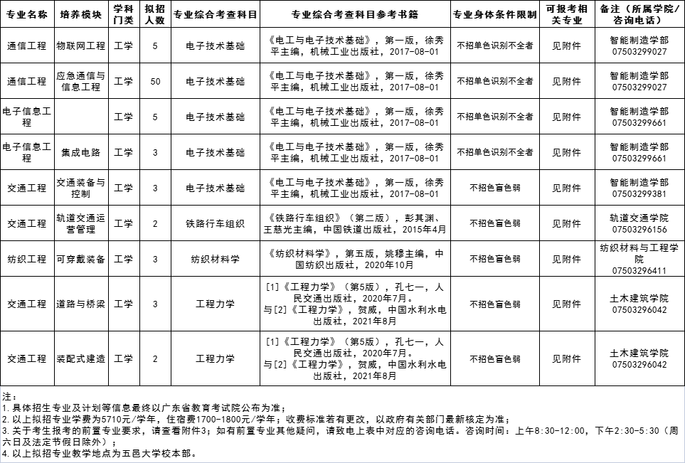 3.五邑大學2023年退役大學生士兵普通專升本擬招專業前置專業要求