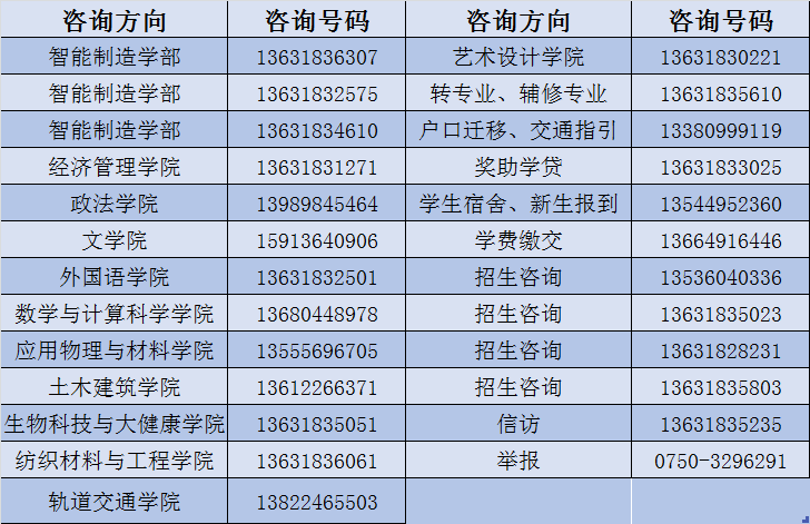 招生辦電話:0750-3296263 3296265 0750-3296267(傳真)