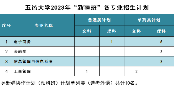 四、“新疆班”及新疆協作計劃(預科班)招生計劃: